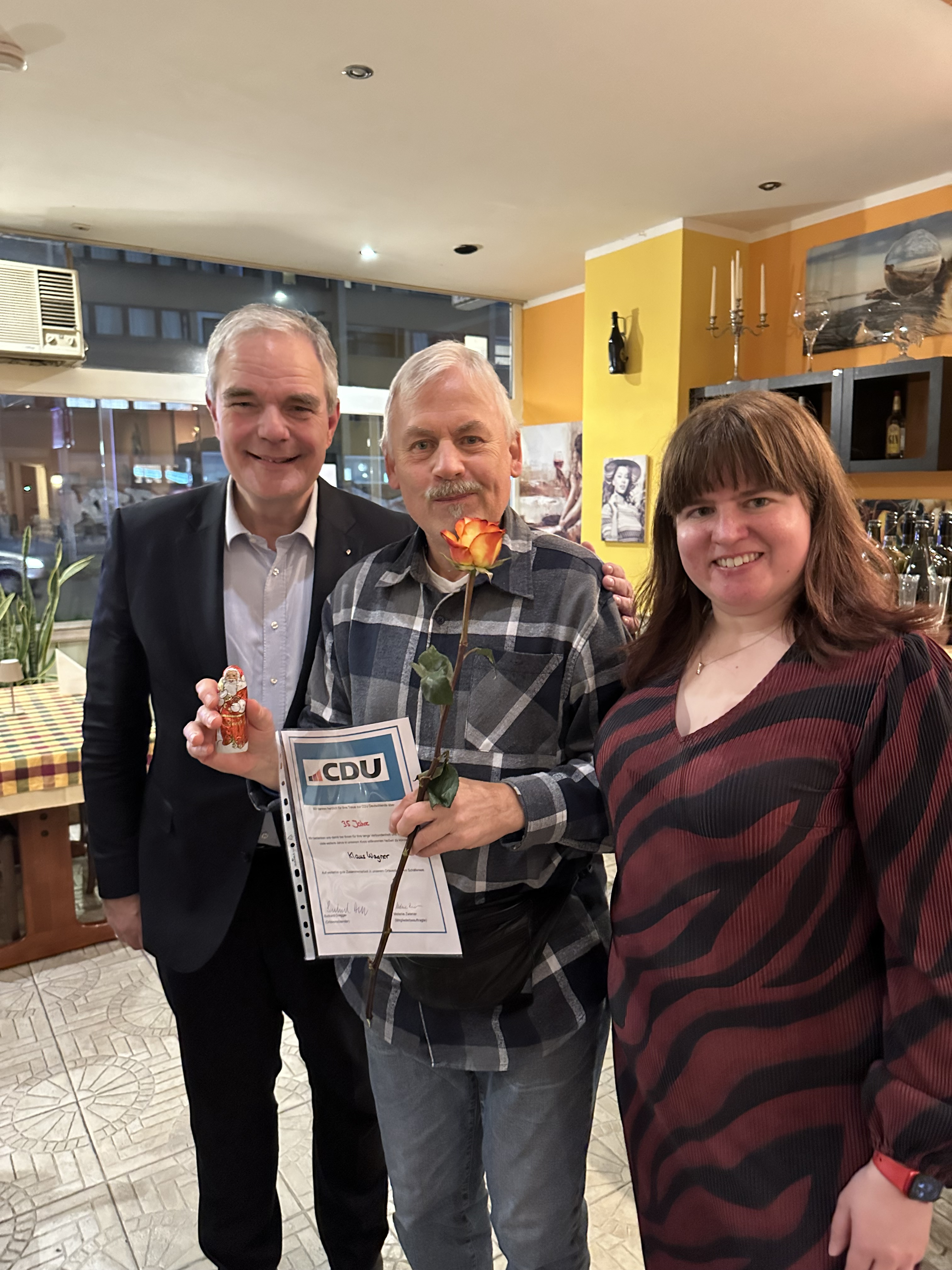 Ein besonderer Programmpunkt des Abends war die Ehrung langjähriger Mitglieder, deren Engagement und Treue den Ortsverband über viele Jahre hinweg geprägt und gestärkt haben. Mit persönlichen Worten, herzlichen Gesten und großem Applaus wurden jene gewürdigt, die sich kontinuierlich für die gemeinsame politische Arbeit einsetzen.